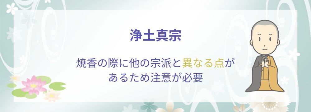 浄土真宗の場合、焼香の際に他の宗派と異なる点があるため注意が必要です。