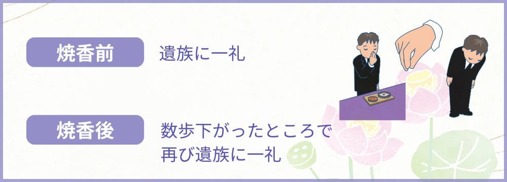 ・他の参列者の焼香の妨げにならないように、焼香台の前を速やかに離れましょう。
