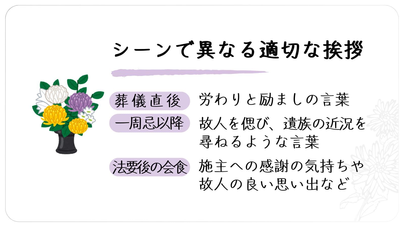 法要の挨拶は、葬儀後どのくらい日数が経っているかによって内容が変わります。