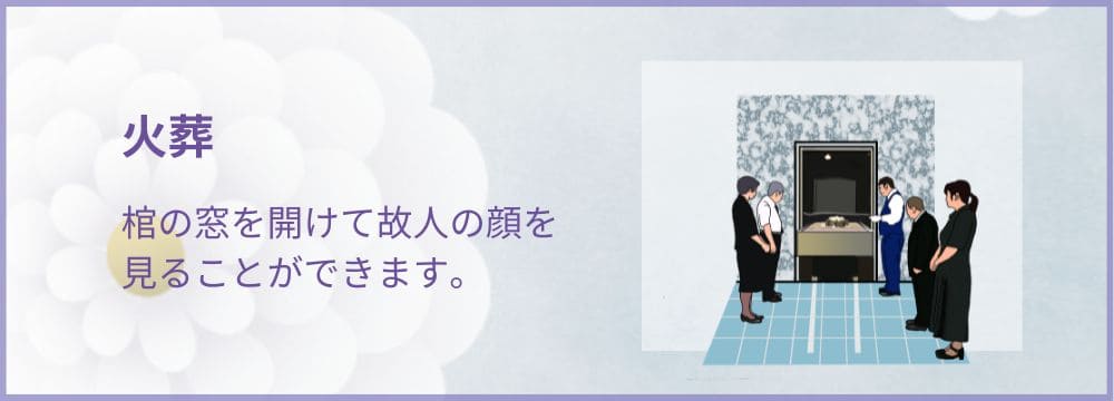 ここで最後のお別れとして、棺の窓を開けて故人の顔を見ることができます。その後、納めの式が行われます。