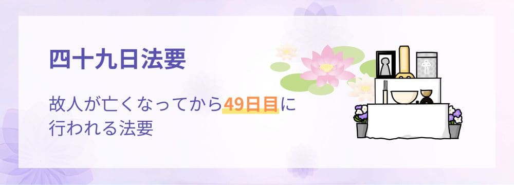 四十九日法要とは、故人が亡くなってから49日目に行われる法要です。