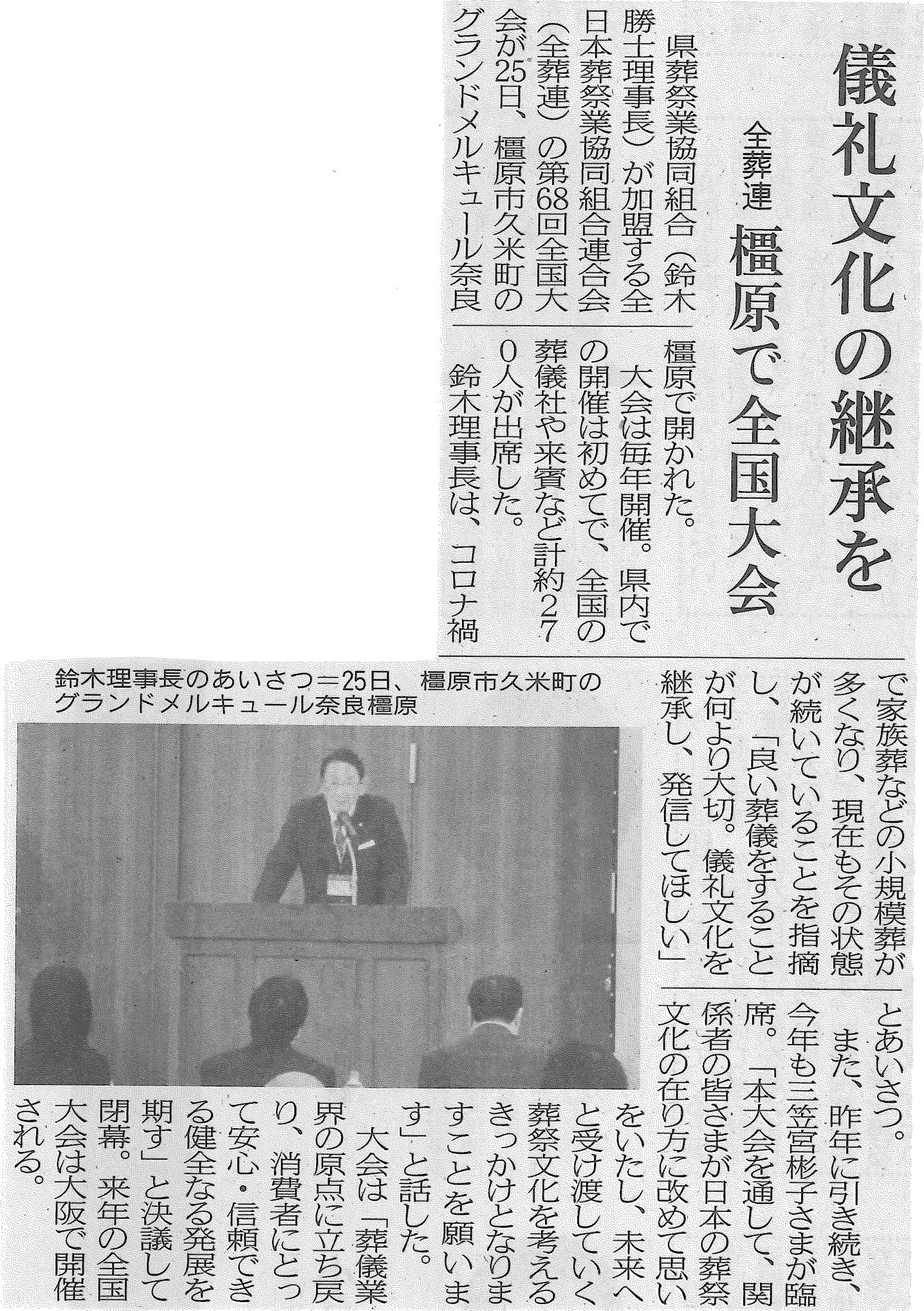 奈良新聞奈良新聞(10月26日朝刊)に「全葬連第68回全国<奈良>大会」記事が掲載されました。 …