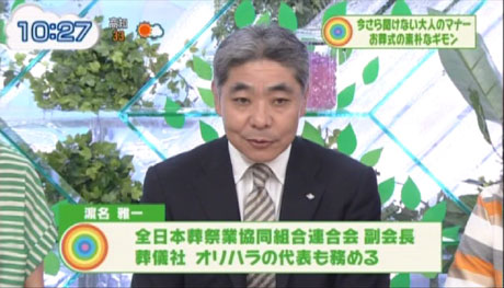 令和元年度以前平成26年 7月 29日 /濵名副会長がTV番組に出演。葬儀の最新事情と葬儀マナーについて…