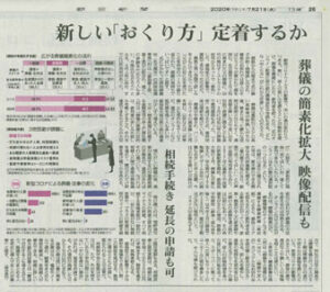 朝日新聞(7月21日付)の新型コロナ関連で葬儀についての記事が掲載されました。