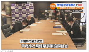 UTYテレビ山梨「スゴろく」 山梨県葬祭事業協同組合と甲府市 災害時の棺手配や遺体搬送で協定