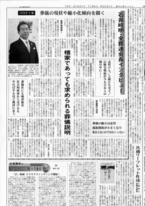 「週刊仏教タイムス」(発行・仏教タイムス社)5月13日号に全葬連の石井時明会長のインタビューが掲載されました。