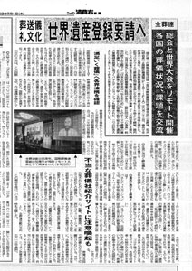 「ニッポン消費者新聞」(発行・日本消費者新聞社)7月1日号に、国際葬儀連盟(FIAT-IFTA)創立50周年記念 日本大会・全日本葬祭業協同組合連合会創立65周年記念 全国<神奈川>大会開催ついての記事が掲載されました。