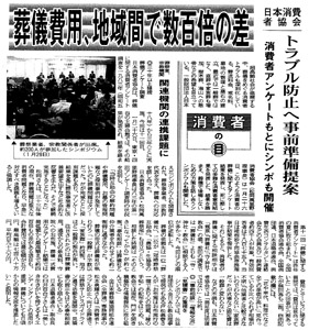 メディア情報新聞、雑誌、テレビなど、メディアに取り上げられた全葬連に関する情報を紹介します。2017.02.01令和元年度以前平成29年2月1日 発行 ニッポン消費者新聞ニッポン消費者新聞2月1日発行、ニッポン消費者新聞の一般財団法人日本消費者協会主催のシンポジウムについての記事に松本勇輝専務理事のコメントが掲載されました。■ニッポン消費者新聞に掲載された記事 平成29年1月 発行 /日本消費生活アドバイザー・コンサルタント・相談員協会発行 平成28年度報告書に全葬連「葬祭サービスガイドライン制定と葬儀広告の表示について」概要掲載平成29年2月7日 発行/ 株式会社経済界 経済界 2月21日号メディア情報TOPへ お気軽にご相談ください!理想のご葬儀を実現!葬儀社を探す事前登録でお得に!if共済会 会員登録はこちら