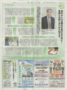 徳島新聞 「終活」特集コーナー(濵名副会長のインタビュー記事掲載)