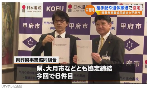 令和2年9月16日 UTYテレビ山梨「スゴろく」 山梨県葬祭事業協同組合と甲府市 災害時の棺手配や遺体搬送で協定|【公式】ご葬儀のことは全葬連(全日本葬祭業協同組合連合会)へ